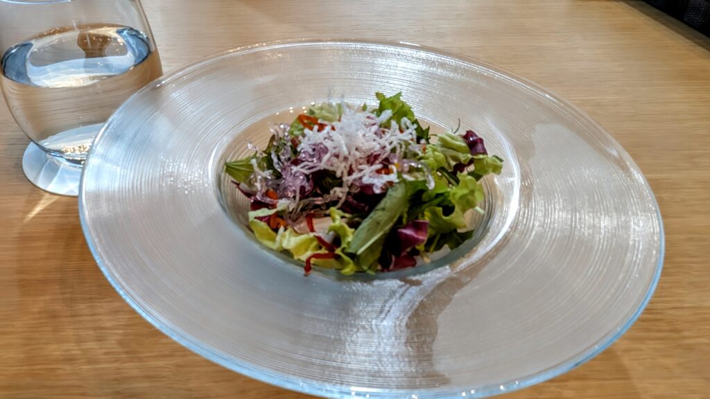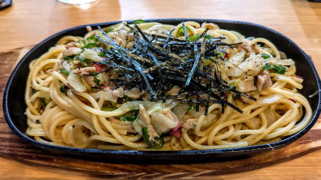 和風パスタが運ばれてきた瞬間、「わあっ」と声を漏らしてしまうほど、盛り付けの美しさが際立っていた。地元の新鮮な野菜が彩り豊かにお皿を飾り、まるで一幅の絵のよう。